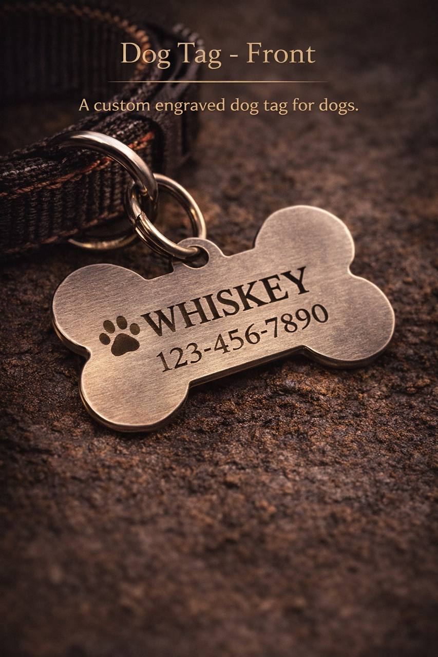 A custom engraved dog tag.